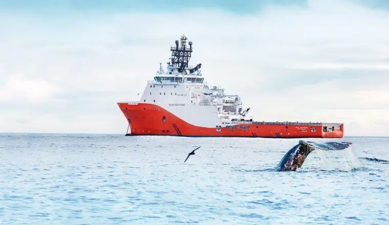 Краснокнижный серый кит обитает в Охотском море, его численность за последние 300 лет сильно сократилась из-за китобоев и браконьеров. Однако, по словам экоактивистов, которым энергетические компании помогают исследовать популяцию морских млекопитающих, сегодня ситуация улучшается. Проведенная в 2019 году экологическая экспедиция на шельф острова Сахалин показала, что популяция серых китов увеличивается. Этому также способствуют усилия энергетических компаний, например, нефтяники используют суда с низким уровнем шума, ограничивают их скорость и выбирают маршруты, удаленные от зон питания млекопитающих.