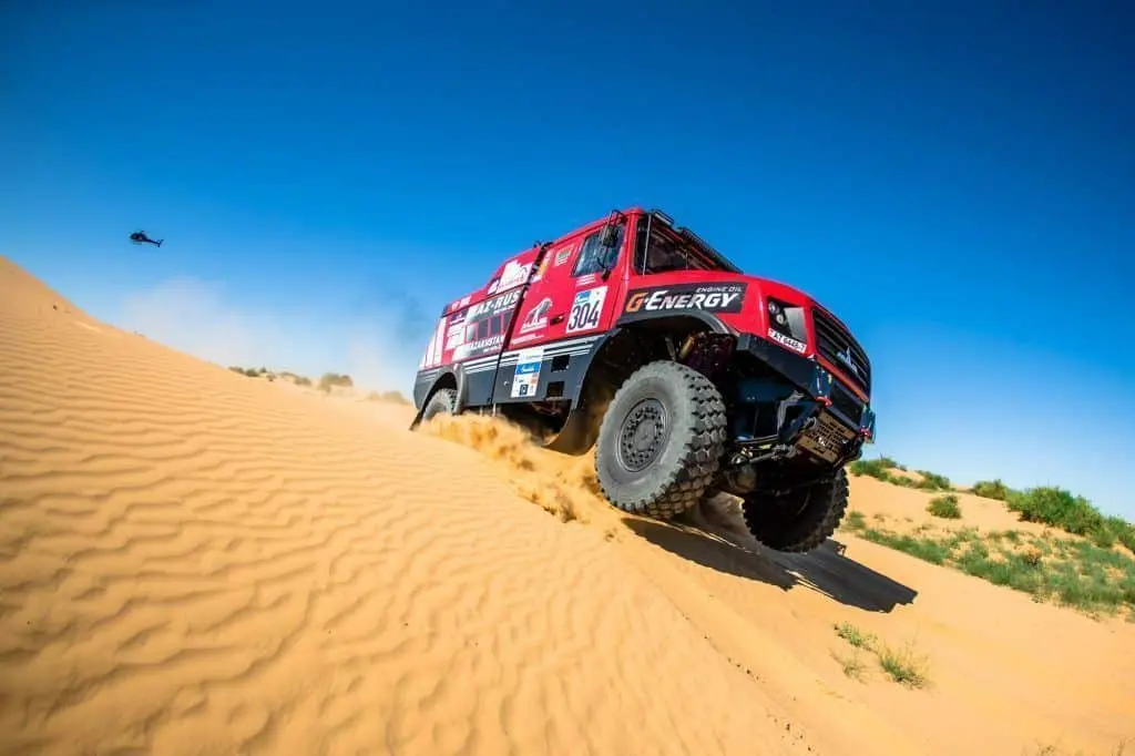 Масса спортивного грузовика КАМАЗ-435091, созданного в июле 2021 года, — 10 тонн вместе с топливом. Без дизеля внедорожник весит на полторы тонны меньше. Максимальная скорость грузовика — 165 километров в час, а мощность — тысяча лошадиных сил.